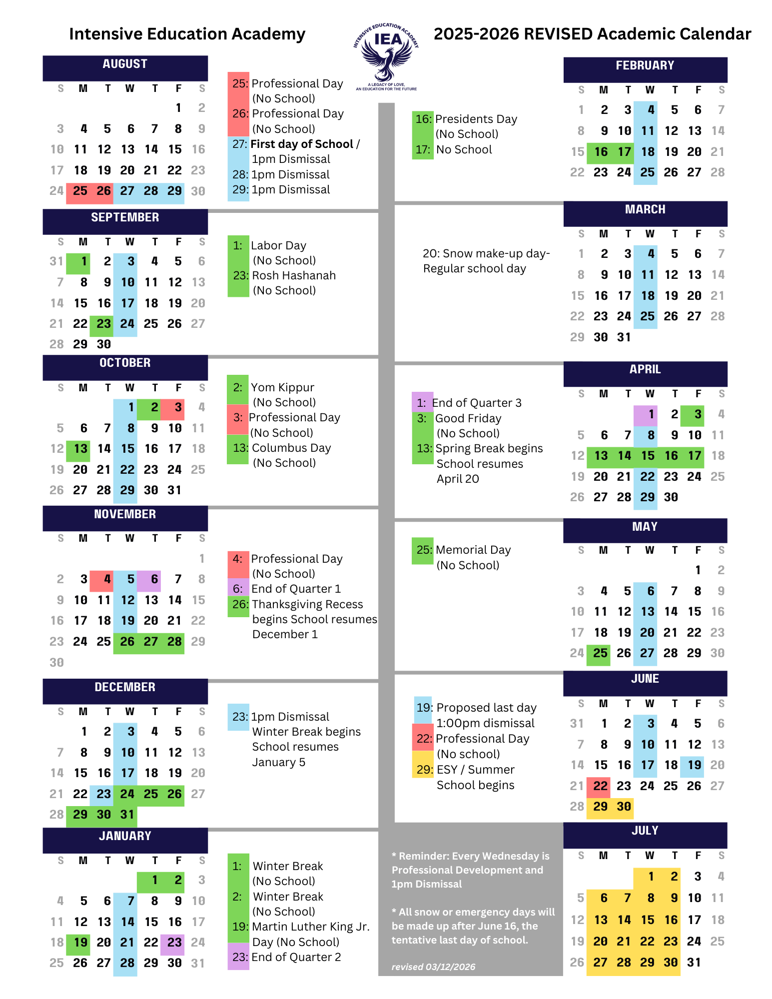 School: Mon., Tues., Thurs., Fri. 8:00am - 2:45pm;